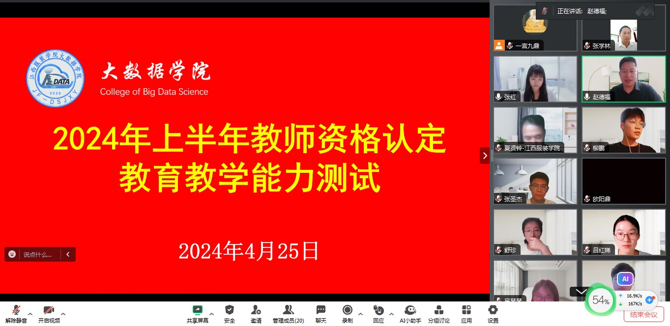 【澳门正规电子游戏平台讯】随着高等教育改革的深入推进,教师的教学能力成为衡量其职业素养的重要指标之一。本次资格认定工作旨在严格把关教师的教育教学水平,确保教学质量,促进学校教育教学的发展。2024年4月25日,我院在线会议成功举办一场别开生面的教师资格认定试讲。学院赵德福副院长、张学林副院长、学院督导以及各教研室主任共同参与了此次试讲的评审工作,他们通过屏幕,远程观看了14位教师们的精彩试讲,对每一位参评者的教学技能进行了细致评估。