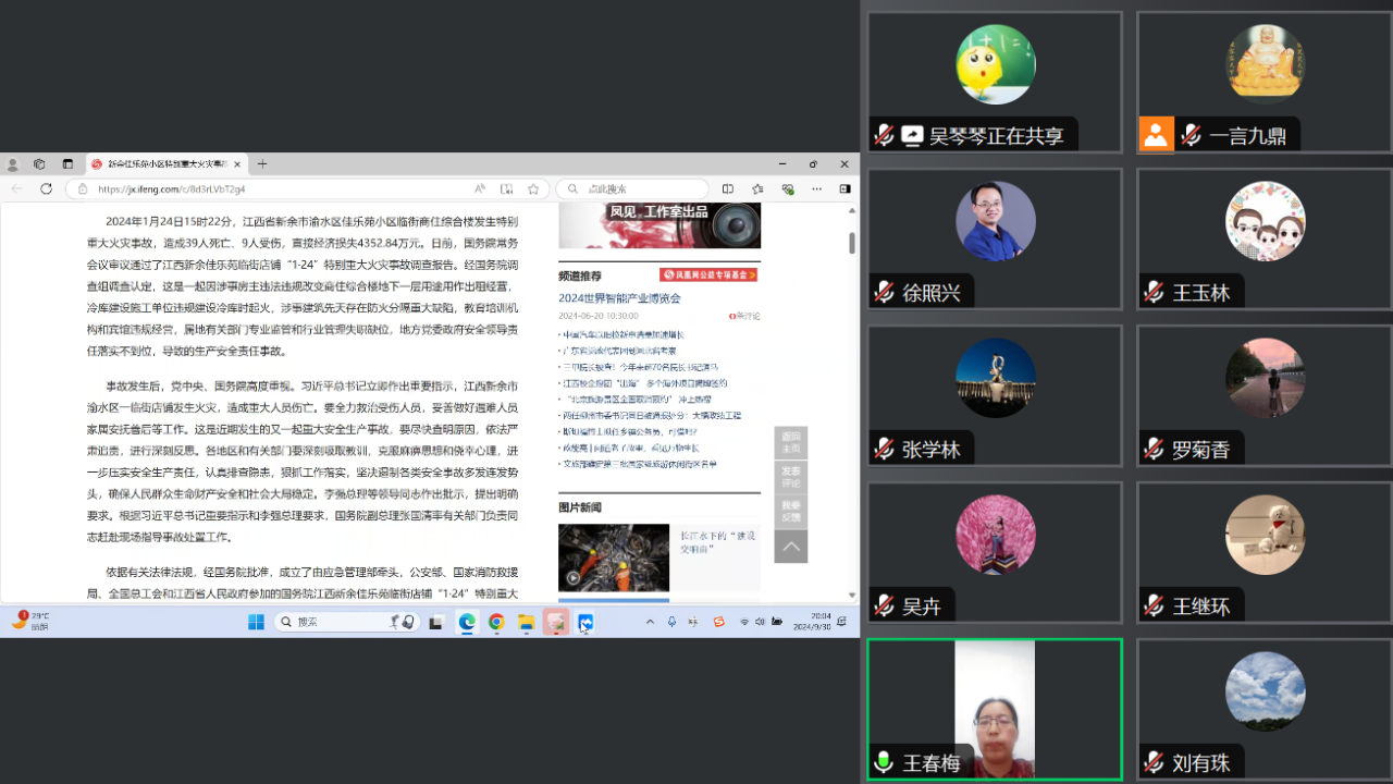 首先,学院王春梅书记带澳门正规电子游戏平台全体教职工学习新余佳乐苑小区特别重大火灾事故的通报的文件,为深刻汲取2024年1月24日江西省新余市渝水区佳乐苑小区发生的特别重大火灾事故教训,全面提升社会各界的安全防范意识和应急处置能力。共同就安全教育的现状、挑战与对策进行了深入探讨。安全是发展的前提,是人民幸福生活的基石。加强安全教育,提高全民安全素质,是我们共同的责任和使命。详细介绍了事故调查报告,分析了事故发生的直接原因和间接原因,包括涉事房主违法违规改变建筑用途、冷库建设施工单位违规作业、教育培训机构和宾馆违规经营、属地有关部门监管失职等问题。报告还总结了事故教训,提出了加强安全监管、完善安全设施、提升应急处置能力等整改和防范措施建议。通过该通报文件的学习王书记强调安全教育要求:“三管三必须”原则:认识到位、责任到位、作风到位,要求全体教师提高安全意识,时刻保持警惕;安全措施部署:各实验室、教室、办公场所必须有应急处置方案。教师需关注师生健康成长,关注意识形态安全。