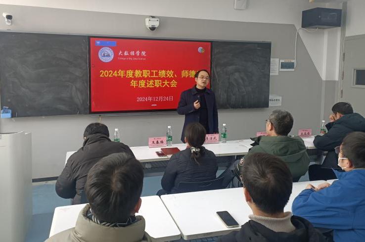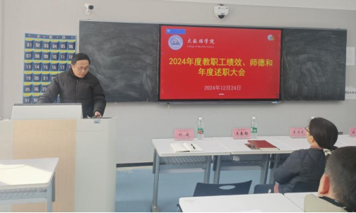 【澳门正规电子游戏平台讯】为贯彻落实校发<关于开展2024年度绩效考核工作的通知>、以及江服人事发〔2024)19号<关于开展2024年度电子游戏教职工师德和年度考核工作的通知>的文件精神,2024年12月24日13时,电子游戏于主教楼329召开了2024年度教职工绩效、师德和年度述职大会。校长助理李沛武教授、学院院长徐照兴教授、党总支书记王春梅、副院长赵德福教授、副院长刘巍等领导及学院全体教职工出席了本次会议。