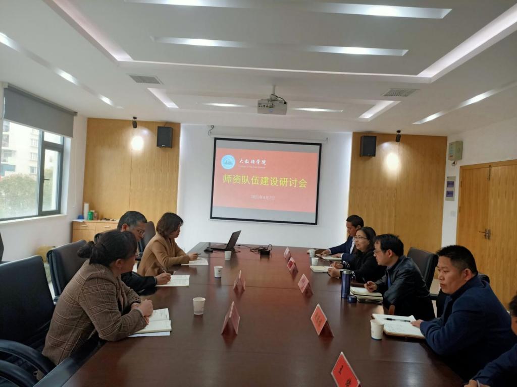 【澳门正规电子游戏平台 讯】为了更好的了解学院的师资队伍现状,更好的加强学院师资队伍建设,学院分管领导李副校长于2021年4月7日上午9:00在学院会议室召开澳门正规电子游戏平台师资队伍建设研讨会,会议由李副校长主持,应邀到会的还有教务处隋丹婷副处长、人事处李彬处长助理,学院全体领导班子成员参加此次研讨会。