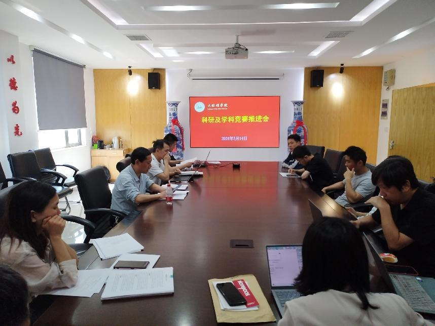 【澳门正规电子游戏平台讯】为了加强学院的科研工作和学科竞赛的组织与推进,也为学院师生提供更多的发展机会和平台,促进学院整体发展和提升。学院于2024年5月14日在清源1栋学院会议室召开2023-2024学年科研及学科竞赛推进会,本次会议由副院长张学林主持,澳门正规电子游戏平台领导、教研室主任以及全体教师参与本次会议。
