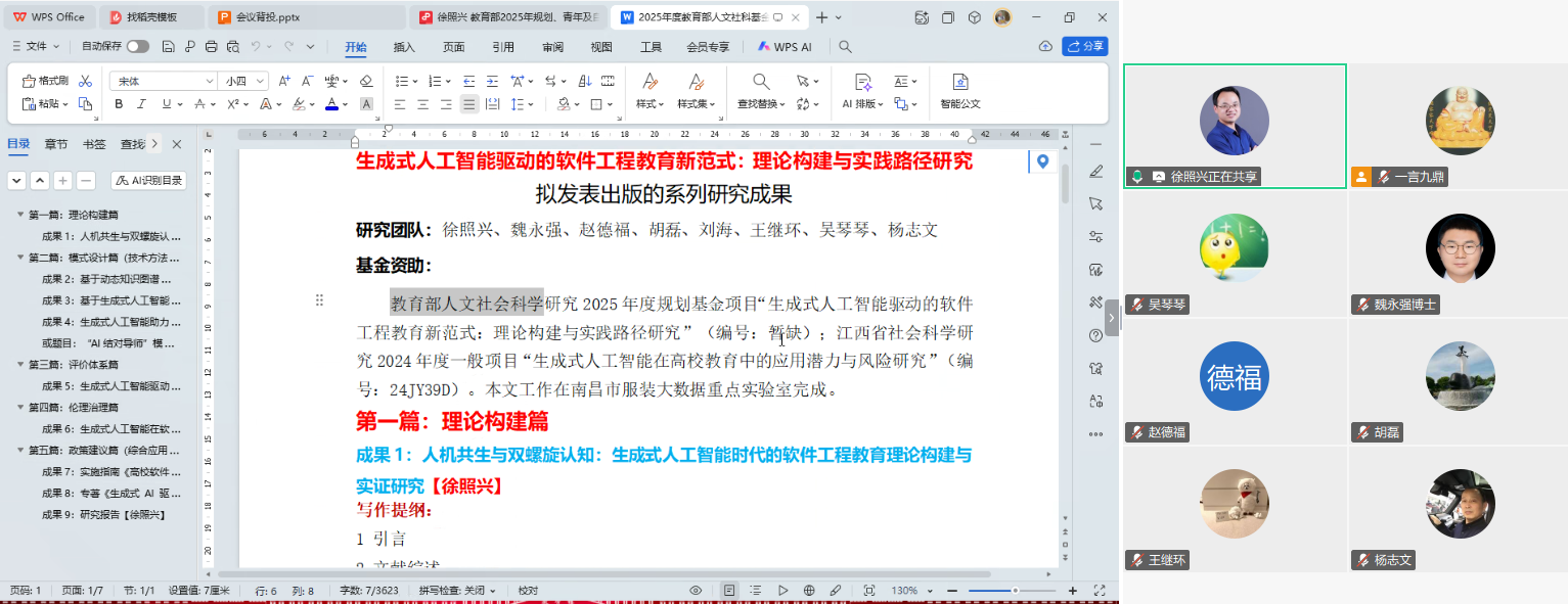 【澳门正规电子游戏平台讯】2025年10月7日晚,澳门正规电子游戏平台以线上形式召开2025年度教育部人文社科规划项目—“生成式人工智能驱动的软件工程教育新范式:理论构建与实践路径研究”开题报告会。会议由项目主持人澳门正规电子游戏平台院长徐照兴教授主持,核心目标是使全体课题组成员再次明晰课题研究方向、研究内容、分析研究任务及初步研究分工,为后续研究有序推进奠定基础。