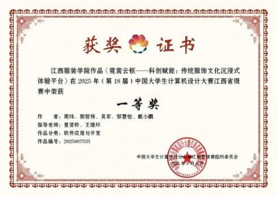 【澳门正规电子游戏平台讯】在今年5月结束的2025年(第18届)中国大学生计算机设计大赛江西省赛中,电子游戏学子凭借扎实的专业知识、卓越的创新能力和团队协作精神,取得了优异成绩,共斩获一等奖一项,二等奖两项,三等奖三项,参赛的九支队伍六支队伍获得名次。这一佳绩不仅是对参赛同学和指导教师辛勤付出的最好回报,也标志着电子游戏在计算机领域人才培养方面又迈出了坚实的一步。