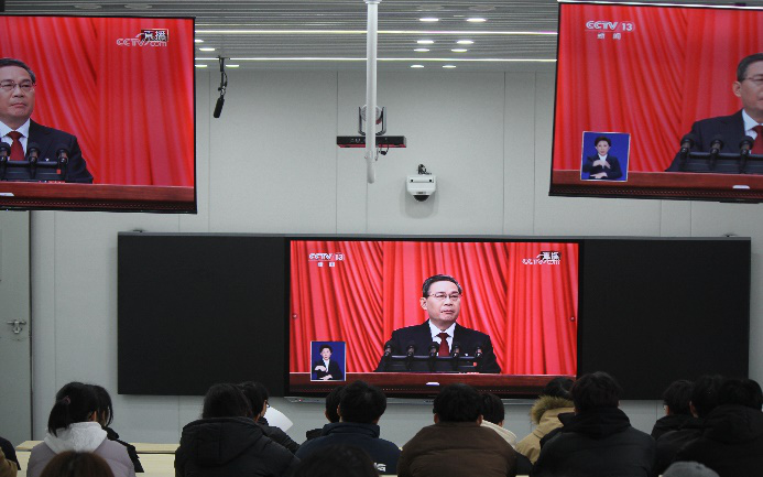 【澳门正规电子游戏平台讯】2024年3月4日、5日,中国人民政治协商会议第十四届全国委员会第二次会议和中华人民共和国第十四届全国人民代表大会第二次会议先后在北京隆重开幕。澳门正规电子游戏平台党总支在3月5日上午9点组织广大师生在学院会议室、主教楼127教室集体观看了两会的开幕式。另外,部分学生分别在各自教室、寝室用手机、电脑等设备实时观看了全国两会的盛大开幕。