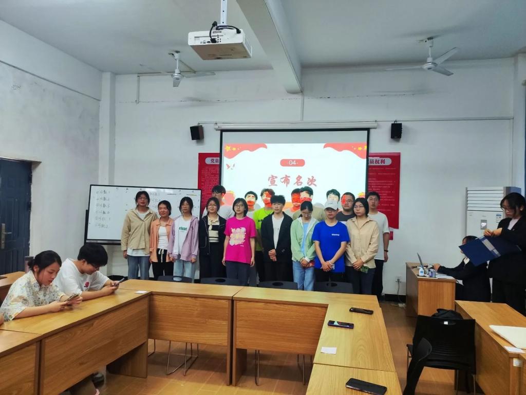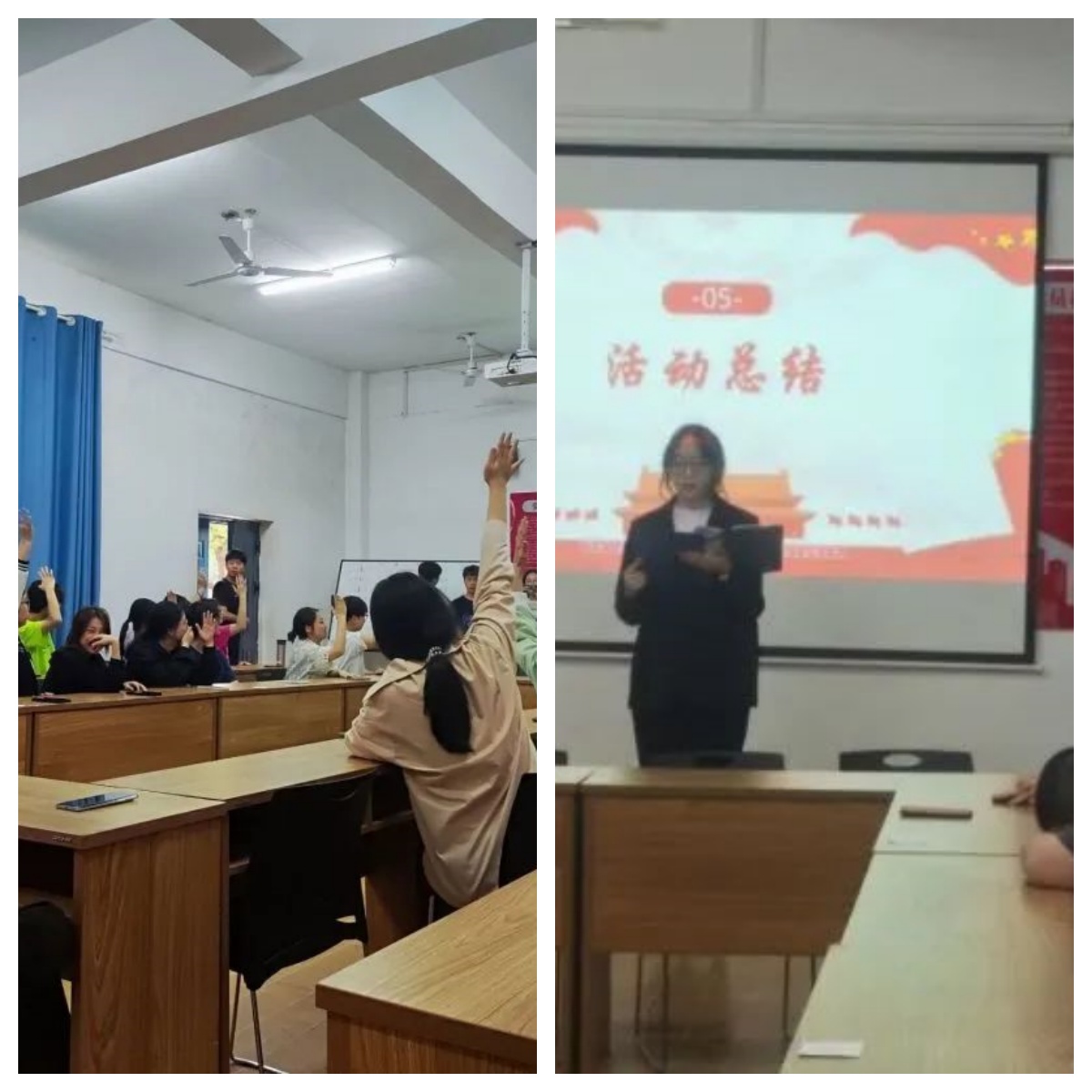 活动第一项,全体成员起立合唱《光荣啊,中国共青团》,接着主持人宣布活动议程。活动第二项,进行相关知识的答题竞赛,比赛采用积分制,每答对一题记一分。在抢答环节时每个小组成员都在认真的讨论,回忆着脑海中的知识。抢答愈演愈烈,抢到的同学回答的又快又准。期间,一些难题被答出来时,其他同学还会给予热烈的掌声和钦佩声。在每一次拼抢中,都无形地加深学生们对知识点的印象。