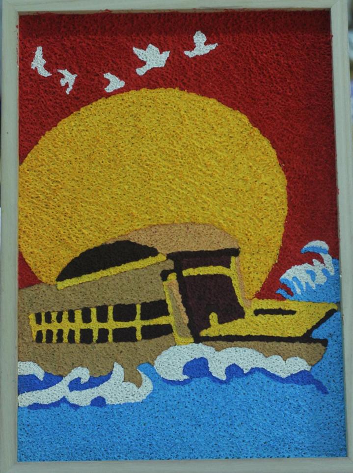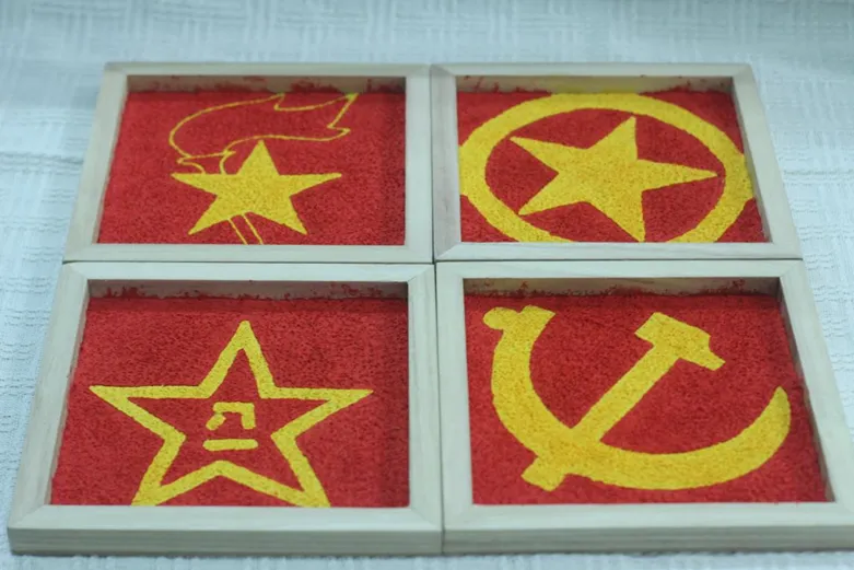 沈静兰深入挖掘红色资源,将党的奋斗历程和伟大成就融入作品之中。她通过实地走访爱国主义教育基地,深入了解红色历史文化的内涵和时代意义,以此为灵感来源,创作出了这幅充满时代特色的纸浆画作品。《星光耀中华》系列云游作品成功参选2024 年全省“红色走读”活动。