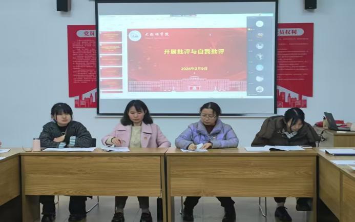 随后,周文琴同志代表学生党支部班子作对照检查,并带头作个人对照检查发言。随后其他同志提出批评意见。大家逐一进行对照检查,依次开展批评与自我批评,每位同志都总结了个人在学习生活和工作中的不足并进行反省,此外,会议还开展了民主评议党员活动,按照“优秀”“合格”“基本合格”“不合格”4个等次,对党员进行民主评议。
