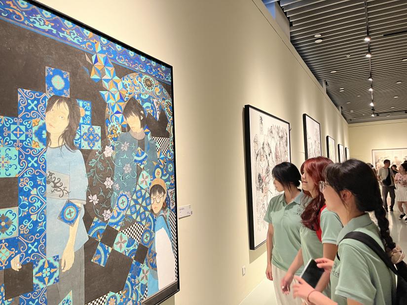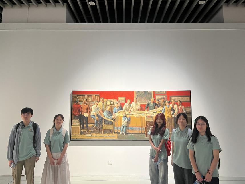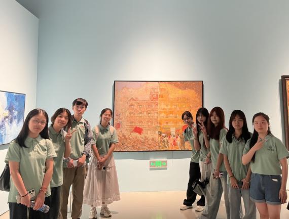 参观过程中,队员们不只是历史的旁观者,更成为精神的对话者。“这些画作里藏着‘源代码’”数据科学专业学生简雅丽感慨道,“革命者用生命破译了民族复兴的密码,而我们钻研数据逻辑,更要传承这种破解难题、追求真理的精神火种。”队员们将专业思维与艺术碰撞交融——有人从画面构图分析革命力量的聚合与迸发,有人从色彩情感维度解读信仰的炽热与纯粹。艺术形象与数据逻辑在红色基因的图谱中奇妙共振,技术使命与家国情怀的深层链接由此建立。