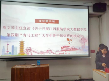 分团委书记周文琴宣读《关于开展版權所有 澳门正规电子游戏平台(中国)股份有限公司-官网第四期“青马工程”大学生骨干培训班的决定》。