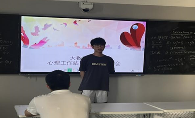 接着,由心理骨干团成员陈罡汇报近期心理工作,在4月9日发布了收集情景剧剧本和拍摄微电影以及进行筛选等工作,在4月23日开展院级心理情景剧大赛,在5月7日,电子游戏心理工作站组织了各年级的心理委员出席心理大使风采活动。