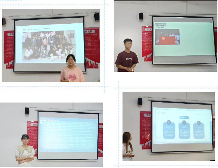 会议伊始,各部门负责人严阵以待,在述职时他们各展风采,以自己独特的方式从部门成员、工作概述、工作总结、未来期望等方面进行讲述。在他们的PPT中放置的图片,参会人员们可以看到当时开展的活动的场景,并感受到当时一些活动的有趣。在他们工作总结中,参会人员们也可以看出,他们对于此次述职工作大会的重视以及对于这学年工作他们感悟深刻。在他们的未来展望中,参会人员们也可以感受到,各部门负责人们对于工作的认真以及对于澳门正规电子游戏平台分团委学生会越来越好的美好期望。