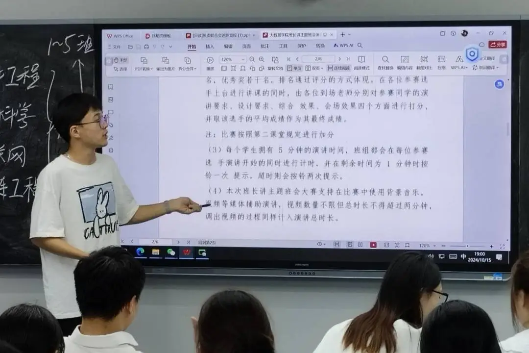 【澳门正规电子游戏平台讯】为进一步发挥班长典型引领示范作用,切实加强班集体建设,提高班级学生素养。澳门正规电子游戏平台班委联合会于2024年10月15日19时在主教楼330举办了2024年秋季学期“班长讲主题班会课”竞赛培训活动。本次培训特邀澳门正规电子游戏平台23数据科学本科3班刘丰盈、服装工程学院23服教本科1班班长缪亚轩作主题班会示范课分享。本次培训由会长王洋主持。