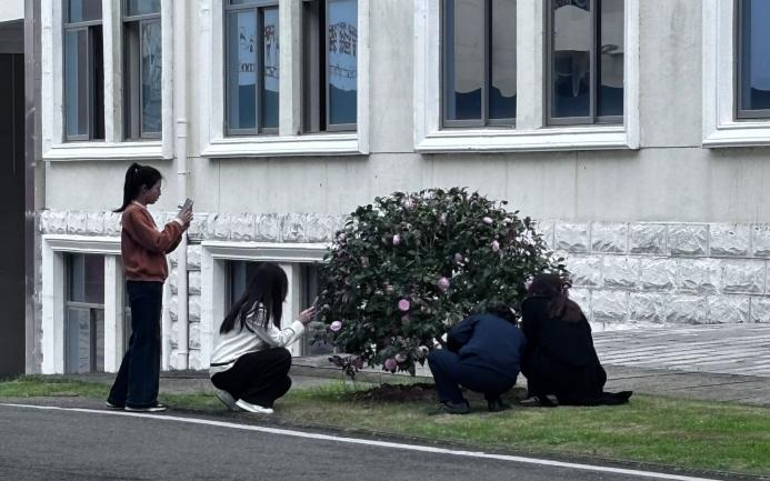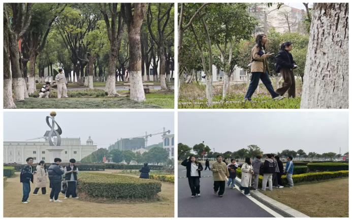 初春的江服的校园内充满了生机与活力。麦冬、桂花林、山茶花、红花檵木、金鱼草、锦绣杜鹃、竹林、樟树、竹柏、云杉、铁树、柏树、小叶黄杨、金边黄杨以及三角梅等植物成为了此次活动的明星。学生们手持植物打卡手册,穿梭于校园的每一个角落,寻找并记录着这些植物的名称、特征。