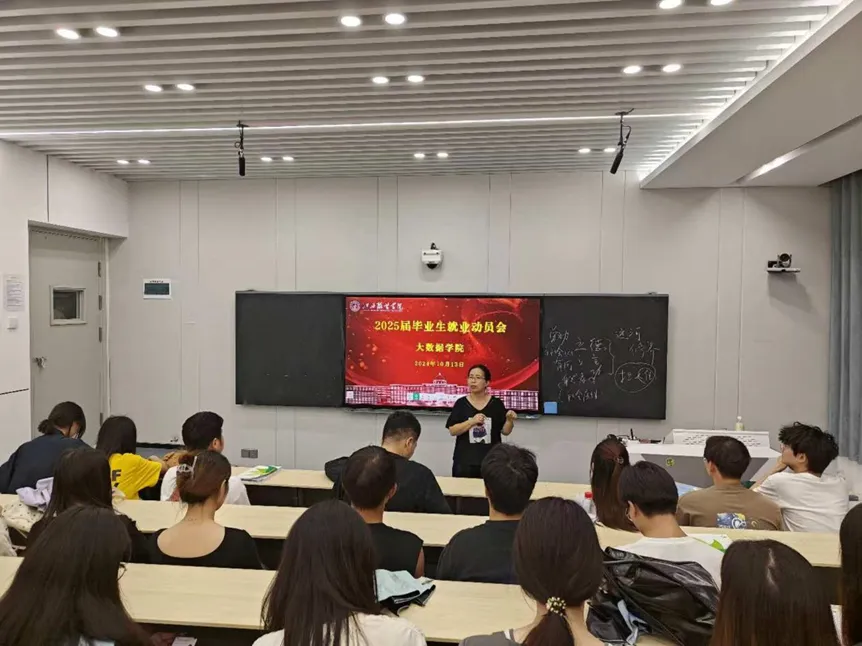 随后,王书记详细分析了当前的就业形势,特别是大数据领域的发展趋势和就业前景。她提到,随着数字化、智能化的深入推进,大数据技术在各行各业的应用越来越广泛,对于具备大数据分析、处理和应用能力的人才需求也日益迫切。因此,毕业生们要充分利用学院提供的各种资源和平台,踊跃参与实习实训、科研项目和创新创业活动,持续磨炼自身的实践能力与创新能力。
