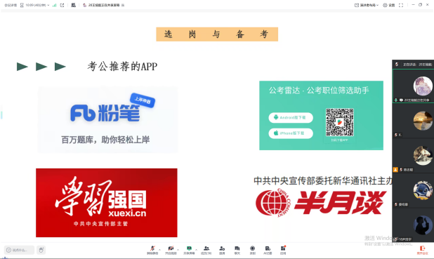 【澳门正规电子游戏平台讯】为精准响应学生就业需求,2025年11月21日晚19:00,澳门正规电子游戏平台“就业服务系列推进会——考公经验分享会”在线上平台举行。本次会议专门邀请了20级的王煊毅同学来给学弟学妹们传授宝贵考公经验与个人独有心得。学院很多非毕业班的同学也加入会议室,大家共同解锁考公备考、选岗的实用“密码”。线上分享会由就业联络员陈志聪老师主持。